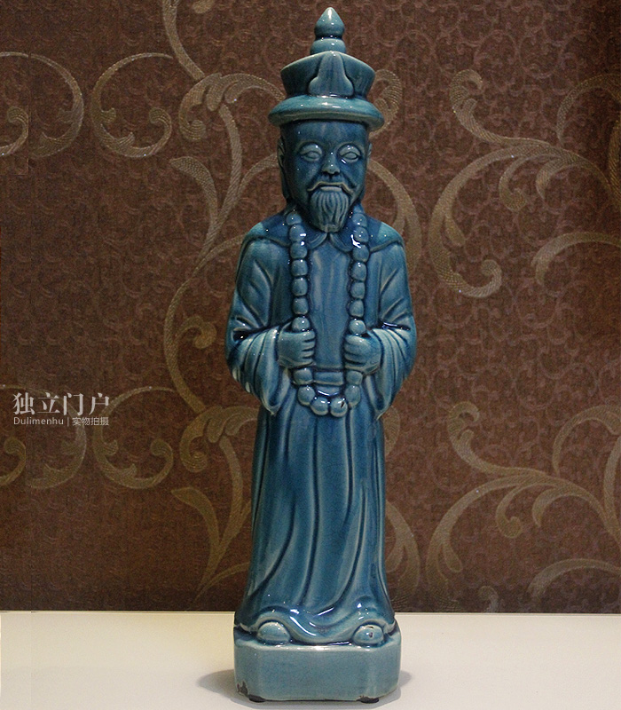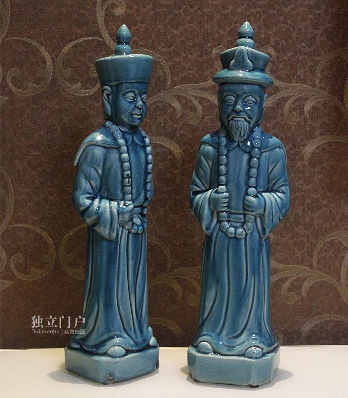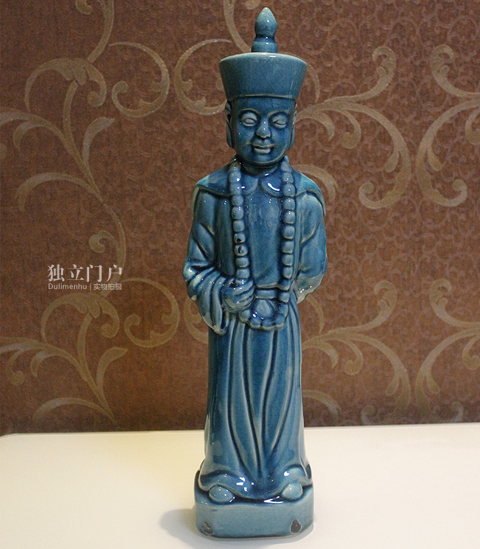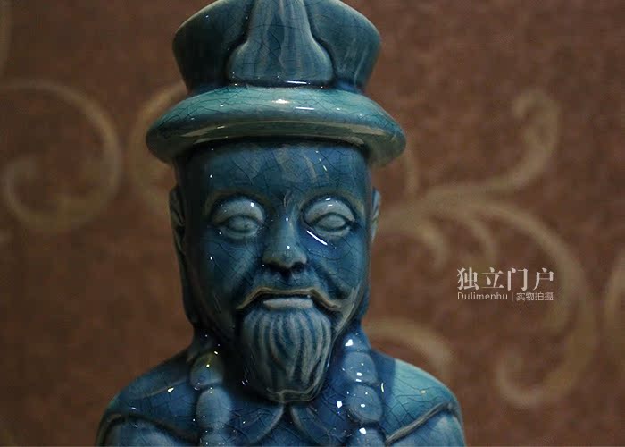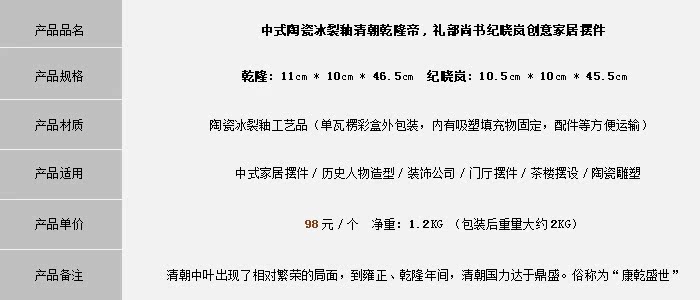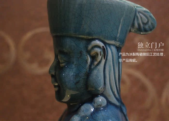獨立門戶中式陶瓷冰裂釉乾隆帝紀曉嵐明清古典人物家居裝飾品擺件