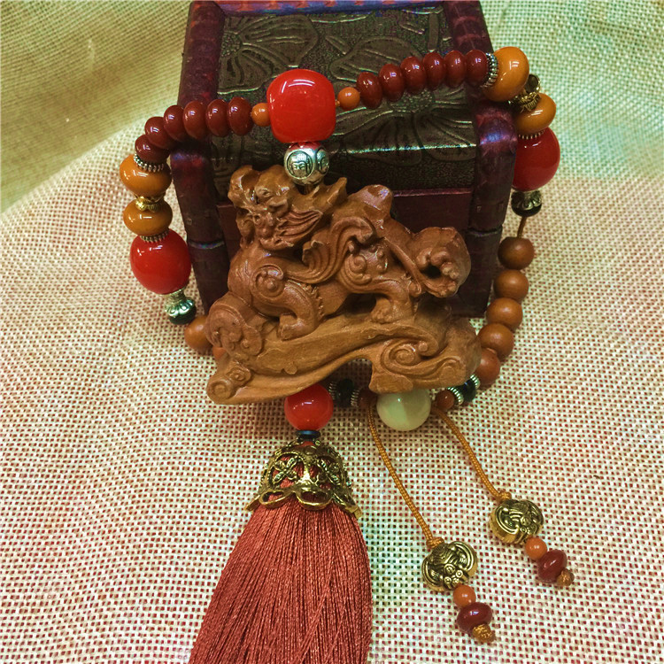 新款棗木汽車掛件 送子麒麟掛飾 仿紅瑪瑙掛珠汽車用品