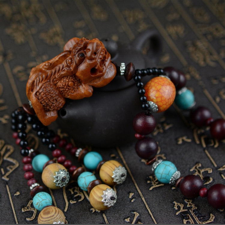 棗木串珠汽車掛件 木雕吉祥物車掛 汽車內飾用品