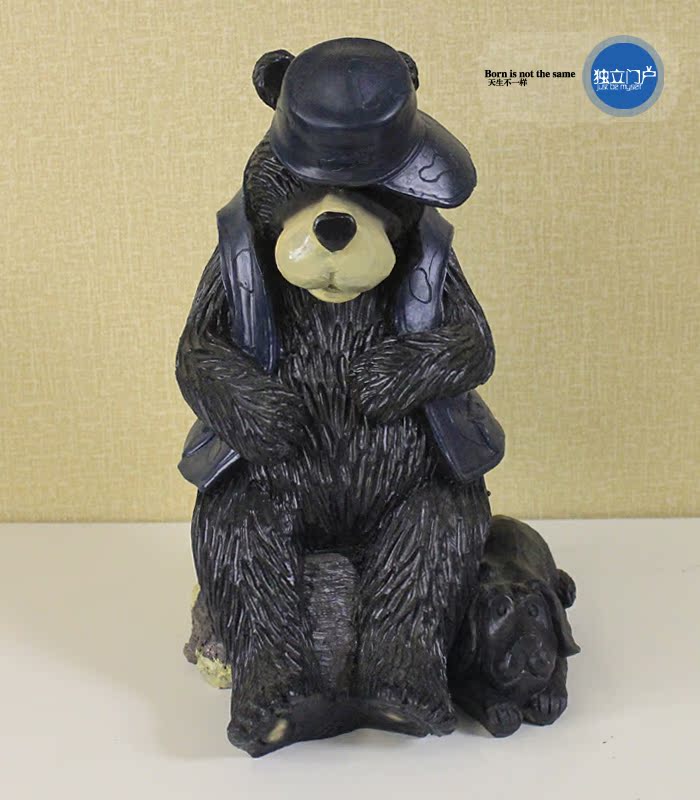 個性創意百搭歪帽黑熊與狗歐式美式家居軟裝隔斷樹脂擺件裝飾品