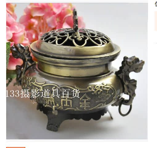 青銅色仿古香爐 復古擺件影樓古裝婚紗攝影寫真拍攝道具檀香爐