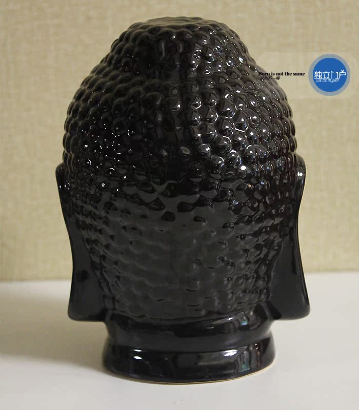印度釋迦摩尼陶瓷黑色垂耳佛首禪意家居擺件會所搭配擺設