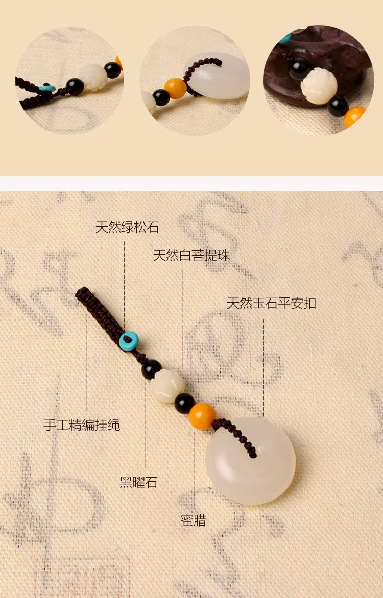 藝品閣【玉石平安扣】 菩提汽車鑰匙掛件 鑰匙扣 男女士 高檔
