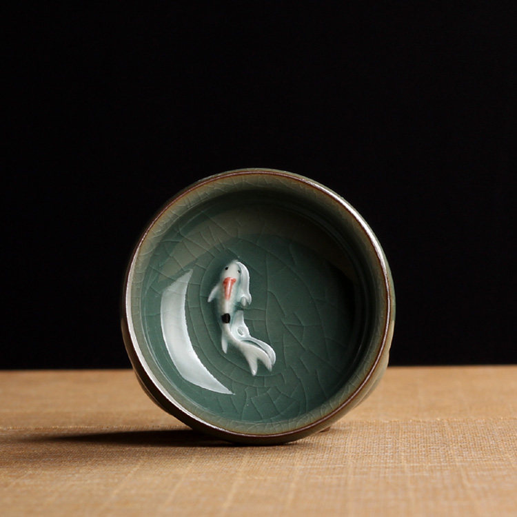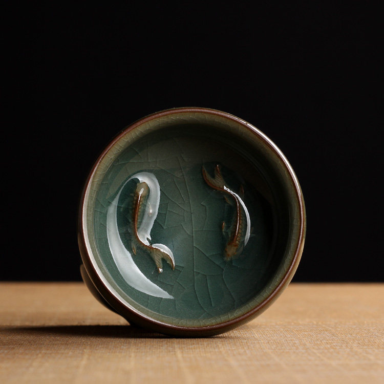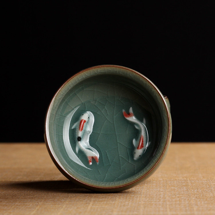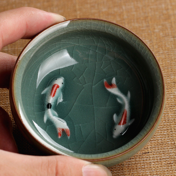 鯉魚單魚杯品茗杯小魚茶杯功夫茶杯龍泉青瓷哥窯冰裂釉彩鯉杯小茶碗特價