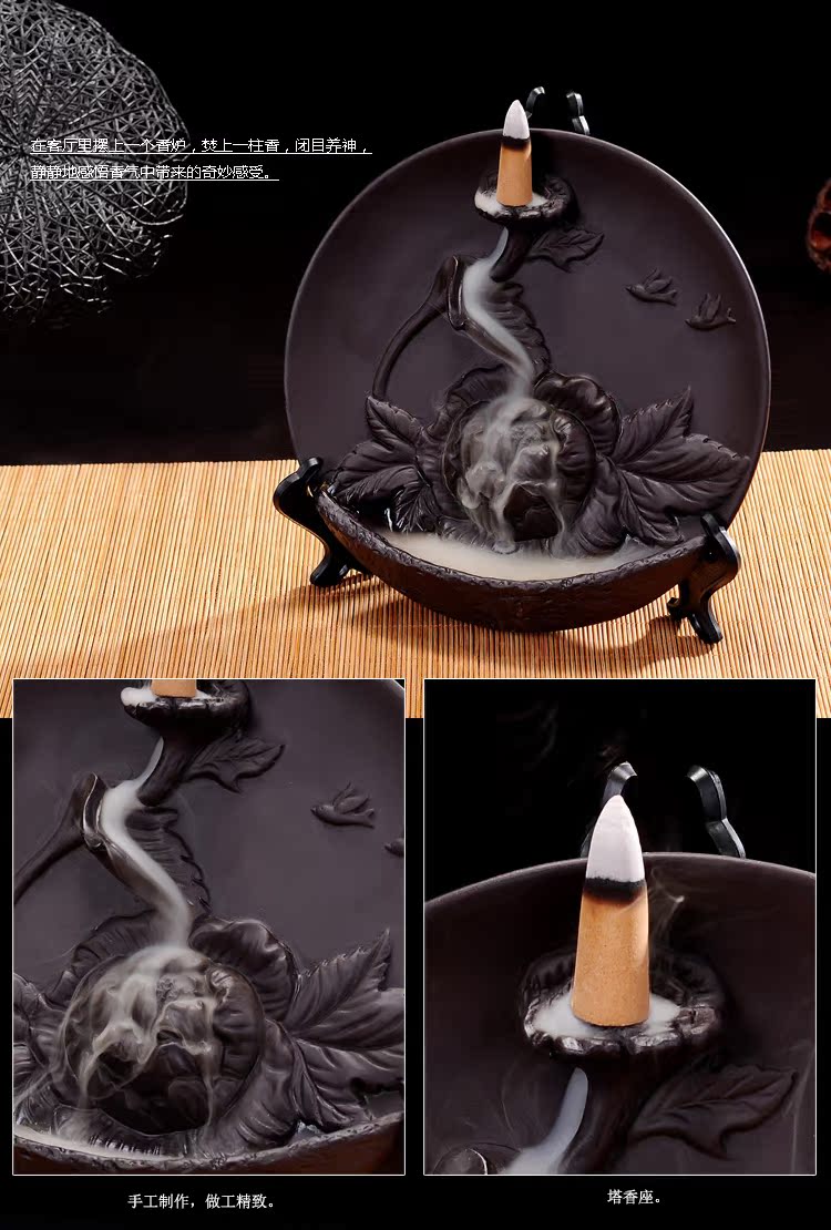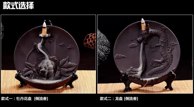 龍盤+60粒香紫砂龍掛盤倒流香爐 居室檀香熏香爐 創意桌面茶道裝飾小擺件仿古
