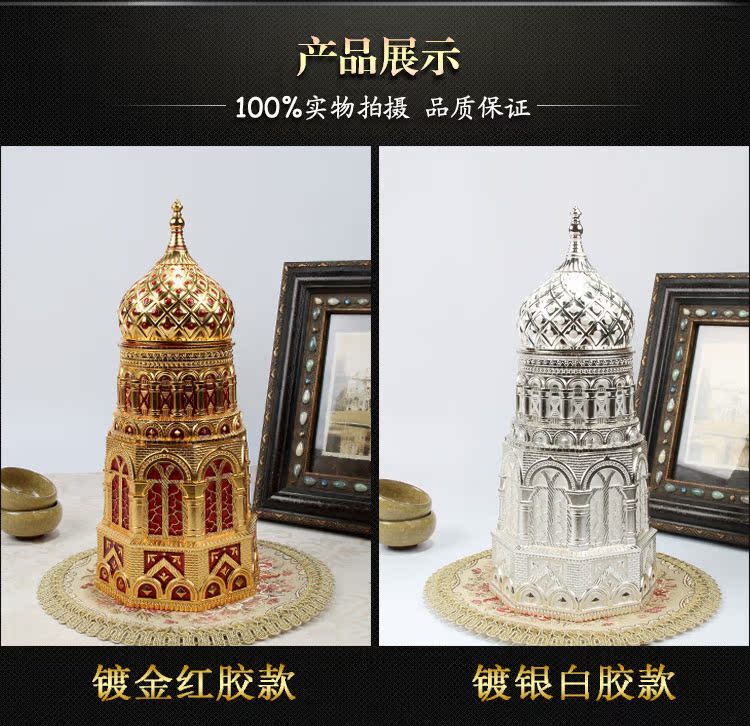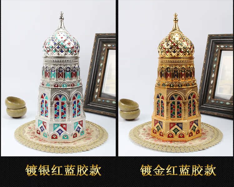 鍍金紅膠款金屬琺瑯彩工藝品擺件歐式圓頂教堂茶葉罐創意建筑大號密封儲物罐