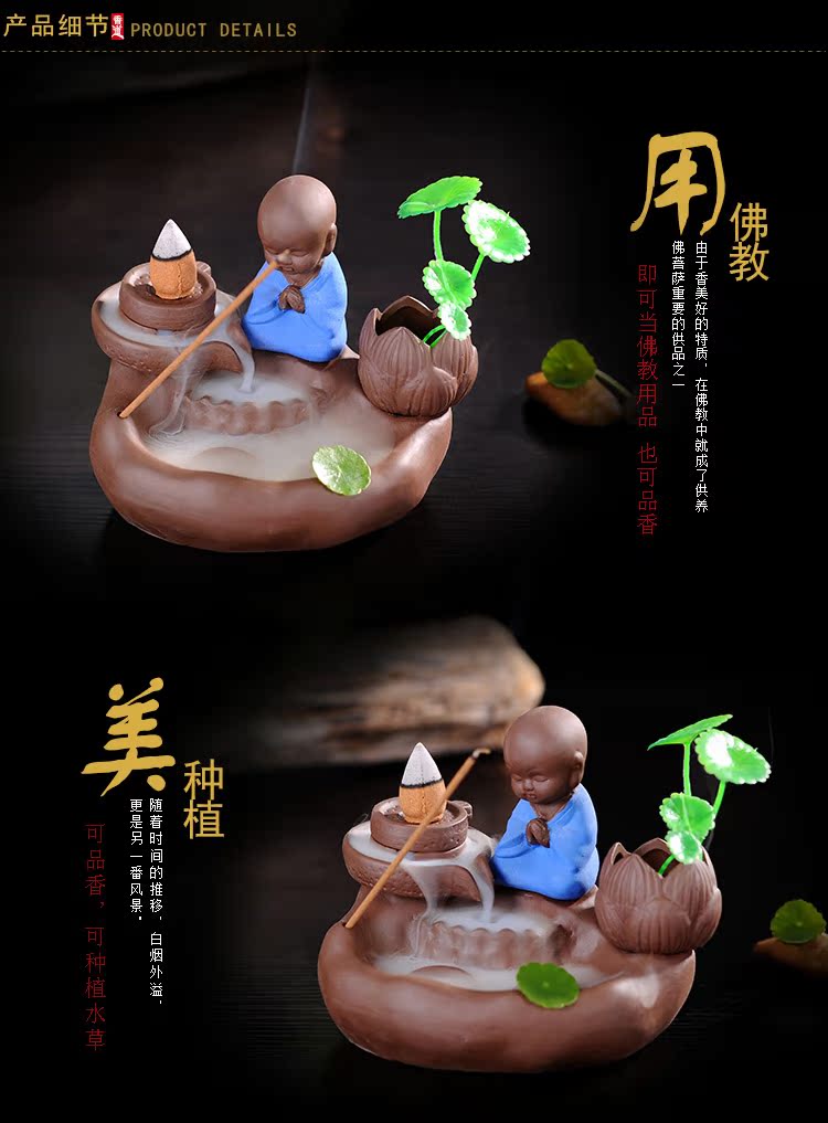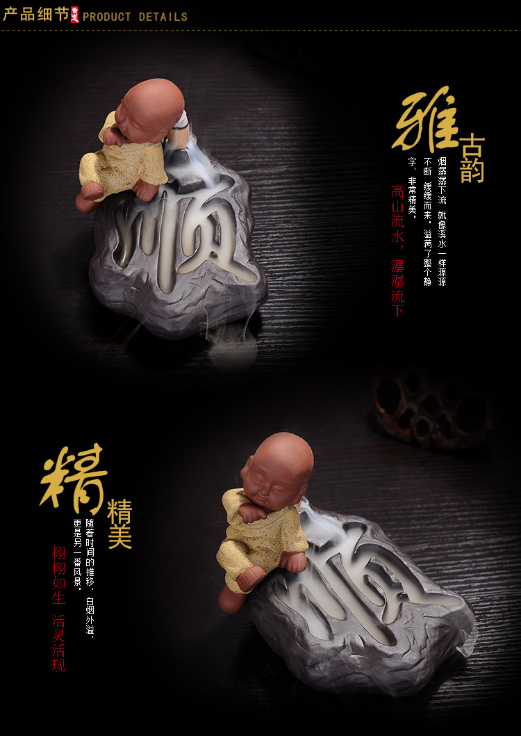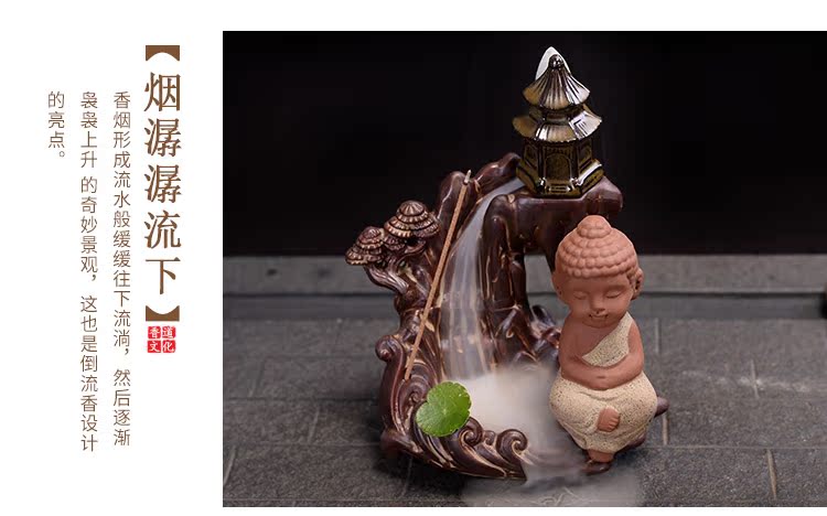 禪座小沙彌紫砂倒流香爐 財源滾滾時來運轉小和尚 觀流煙香熏創意茶道擺件
