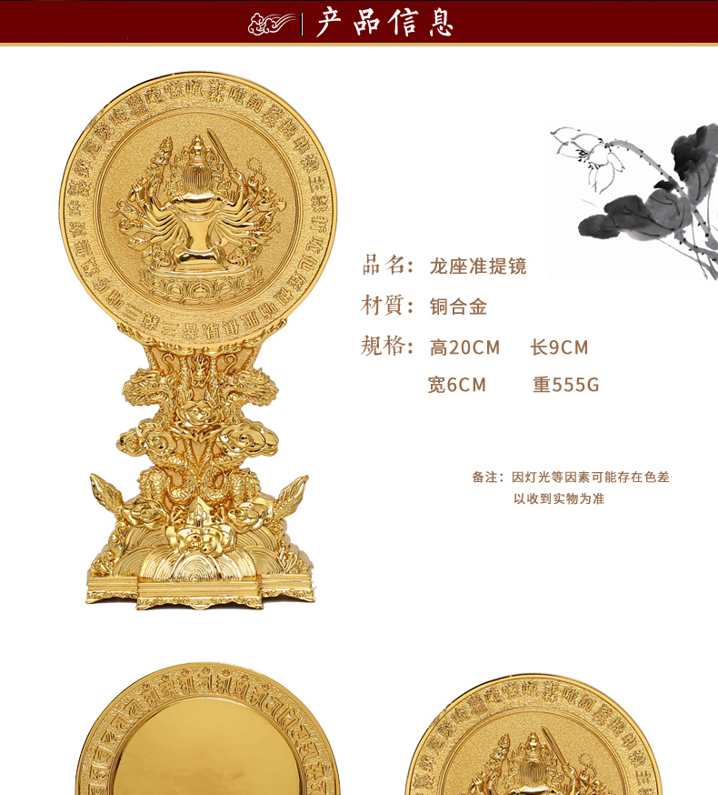 龍座準提鏡準提鏡銅合金 藏傳密宗用品 佛具法器 龍座式準提鏡銅 平安護身鏡