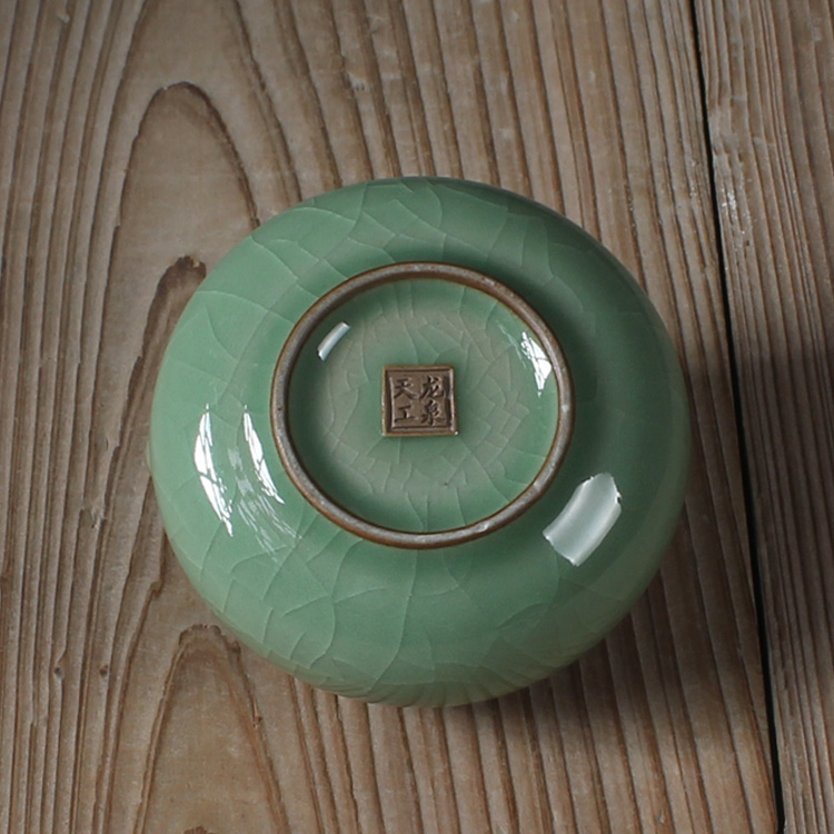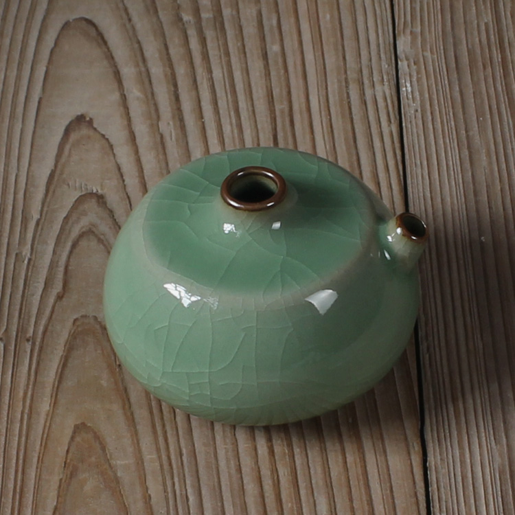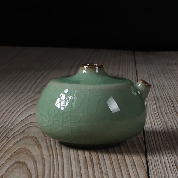 【名 稱】:哥窯梅子青硯滴 【規 格】:高6.5厘米 總寬9厘米口徑1.5厘米 【容量】:300 毫升 【產 地】:龍泉 【包 裝】:防震包裝 如需禮盒 請聯系客服 【工 藝】:哥窯開片 釉片開片的黑胎青瓷稱“哥窯”,哥窯青瓷以瑰麗、古樸,的紋處片為裝飾手段,例如冰裂紋、蟹爪紋、牛毛紋、流水紋、魚子紋、?血紋、百極碎等,其釉層胞、晶瑩。因其泥土上含大量鐵素,燒成后呈“紫口鐵足”。與釉面開片紋飾相映,更顯古樸典雅,乃青瓷之上品。 【用 途】:饋贈 朋友長輩 喬遷之喜 國外友人 紀念禮品 裝飾擺設自己使用 等