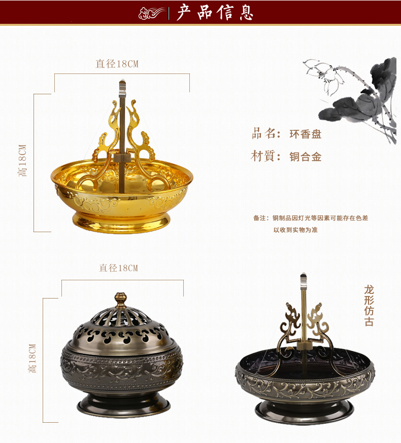 龍形仿古佛具凈爐銅合金 24小時大盤香爐 加蓋 龍形 鳳形環香盤凈香爐