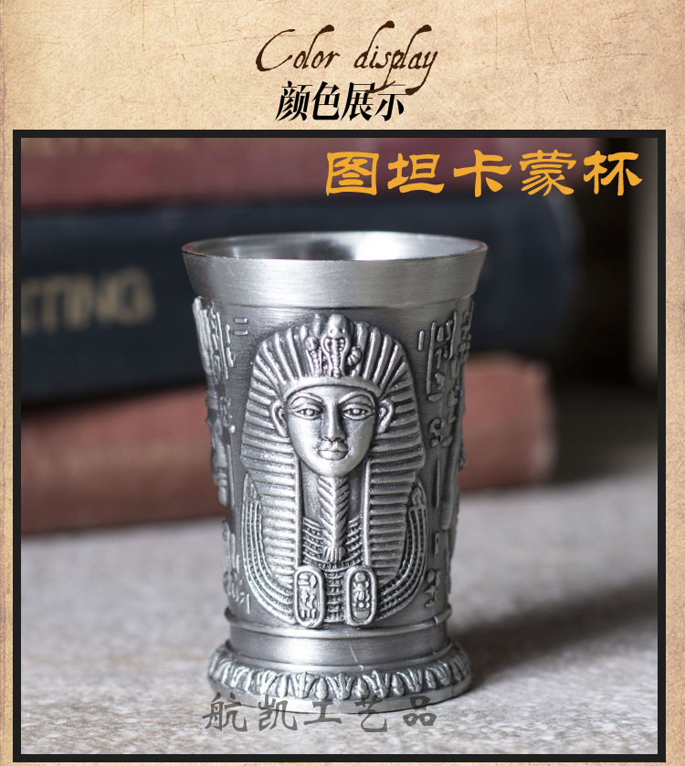 圖坦卡蒙鋅合金埃及法老王酒杯金屬工藝古埃及圖騰酒杯歐式復古白酒杯擺件