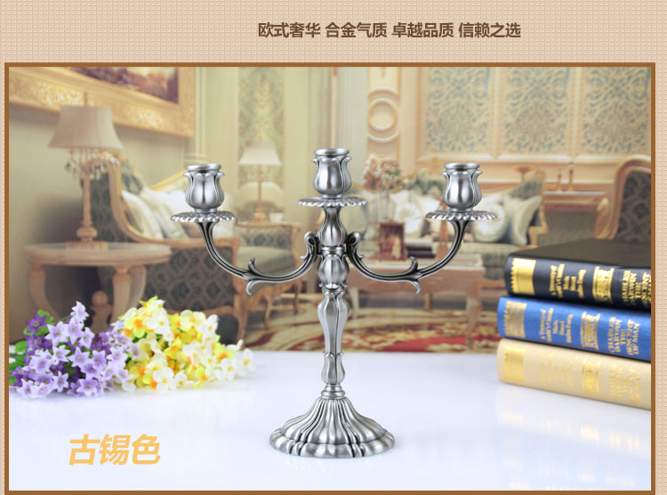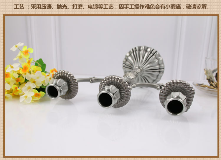 銀色浪漫餐宴玫瑰花金屬燭臺歐式典雅創意酒店家居婚慶樣板房燭臺擺件