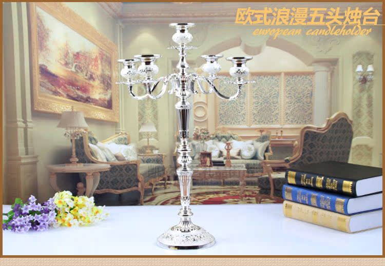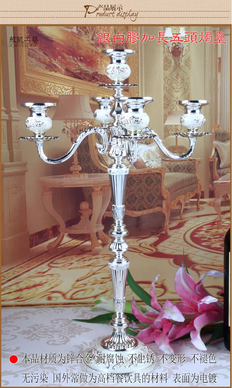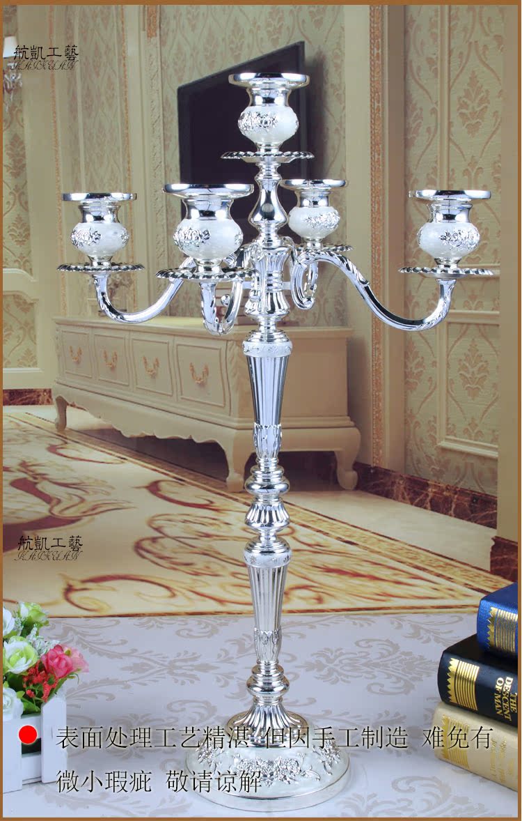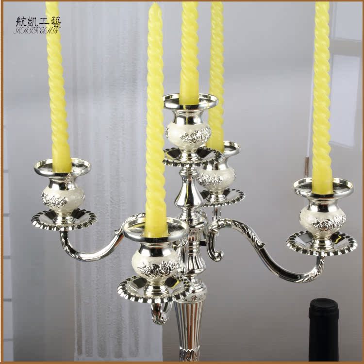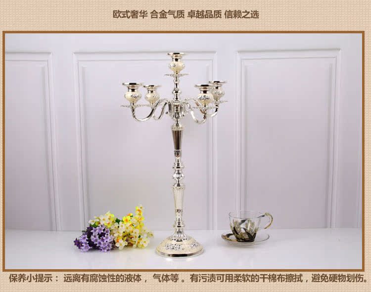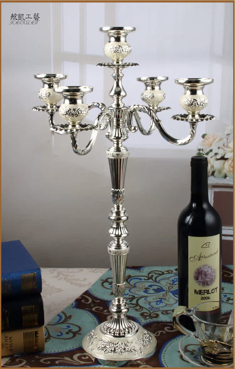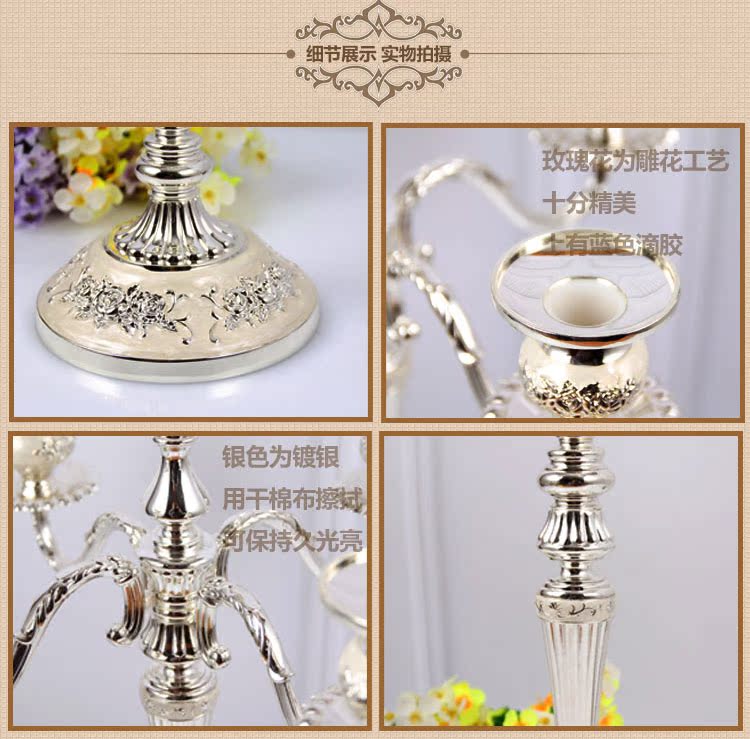 銀色金屬創意歐式復古家居餐廳玄關裝飾擺件聚餐婚慶氣氛銀質高蠟燭臺