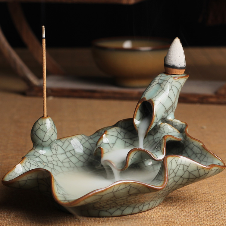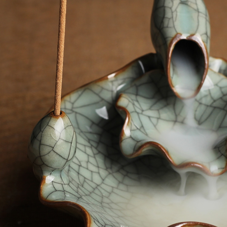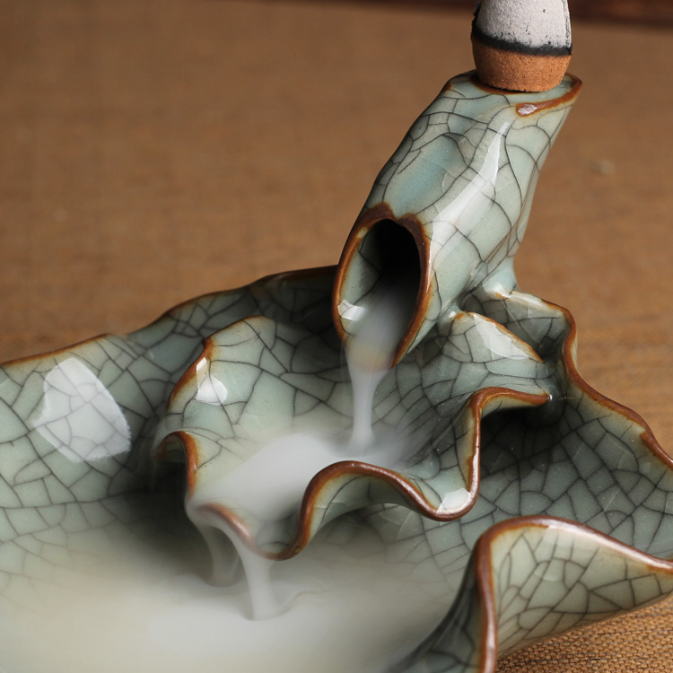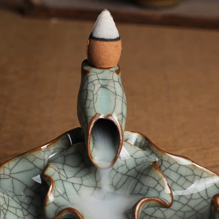 哥窯粉青做線龍泉青瓷香爐倒流陶瓷檀香爐流煙熏香爐創意擺件塔香高山流水香道