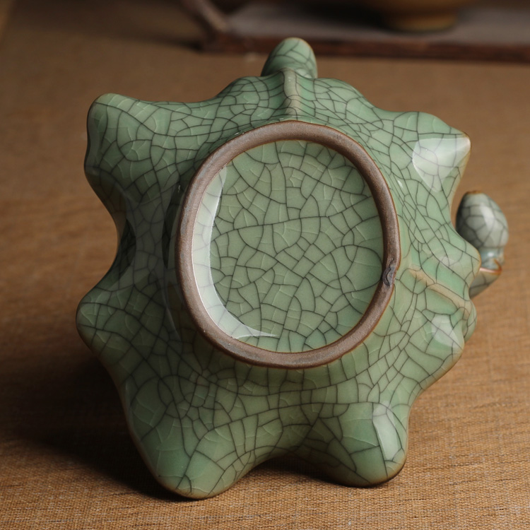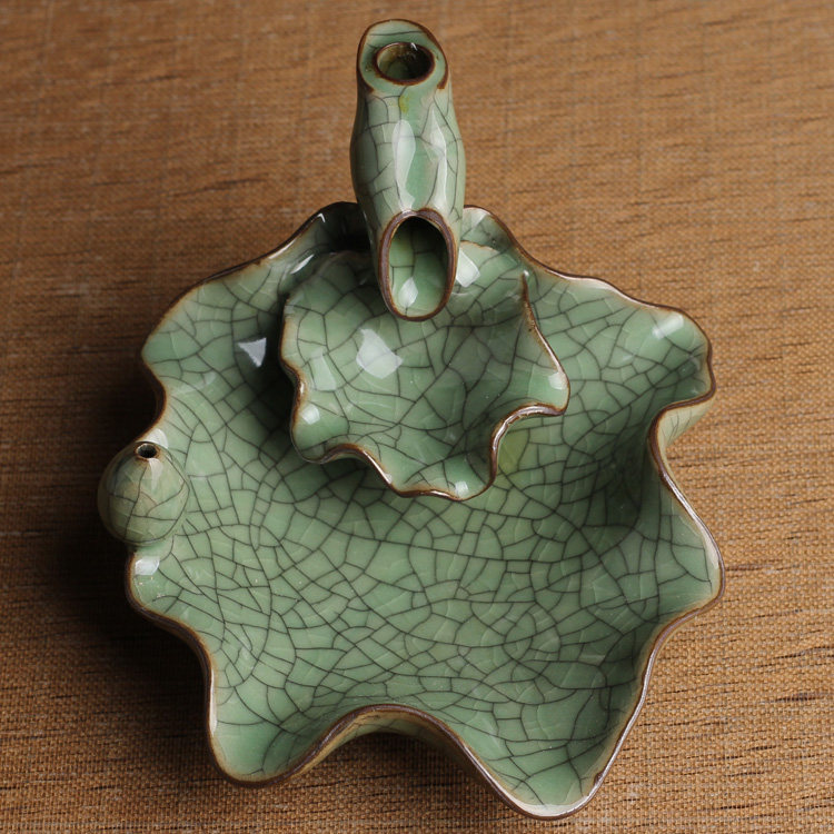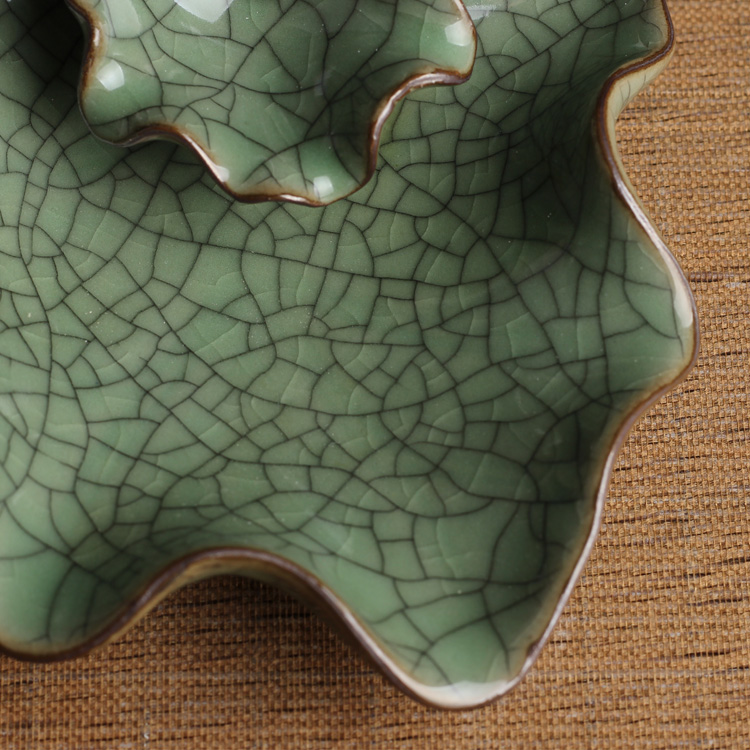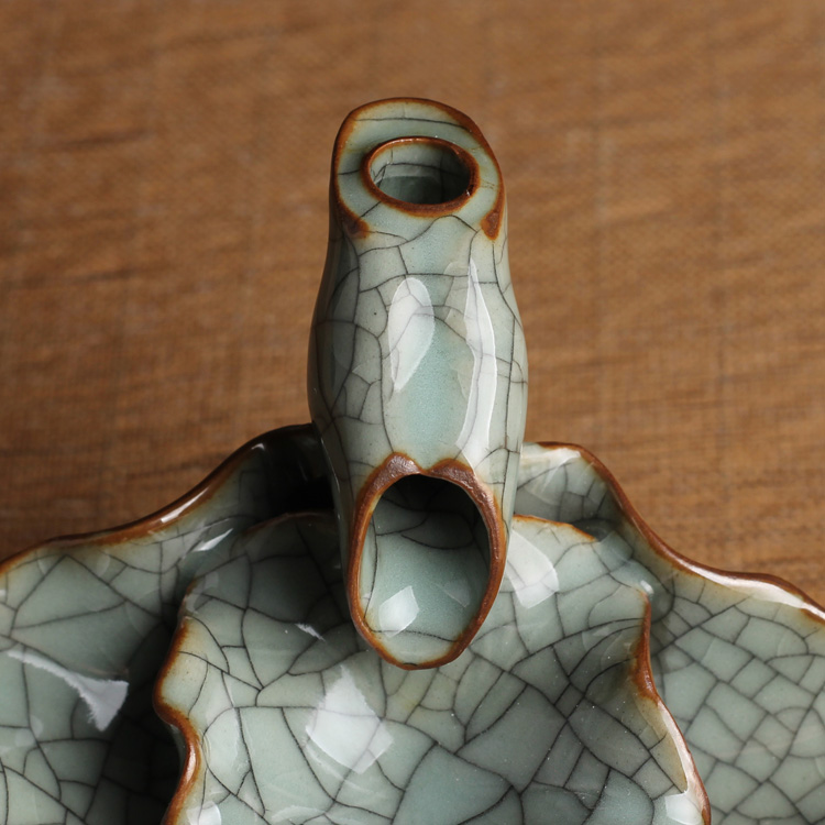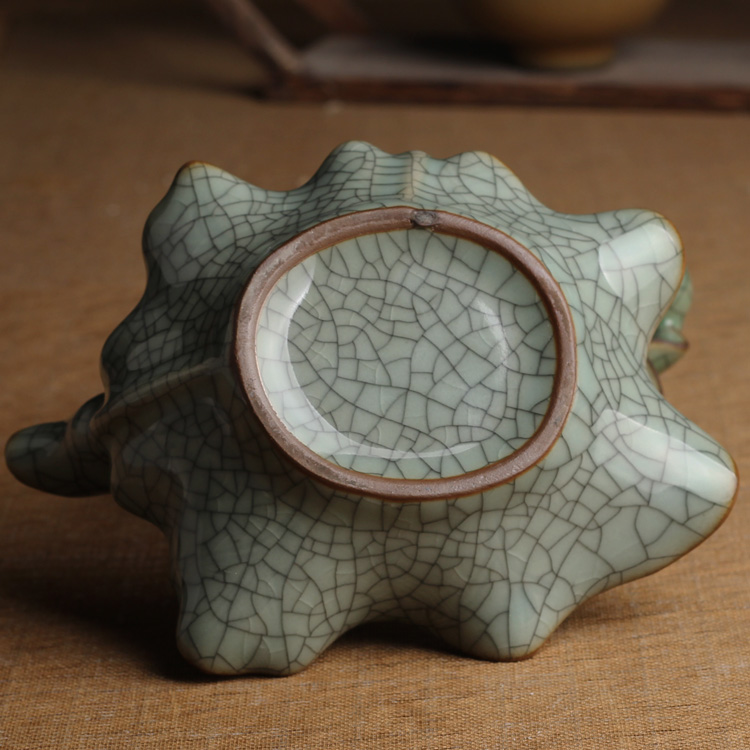 荷葉花器(小號哥窯梅子青冰裂)龍泉青瓷花瓶擺件客廳插花陶瓷水培容器綠蘿現代簡約家居創意裝飾