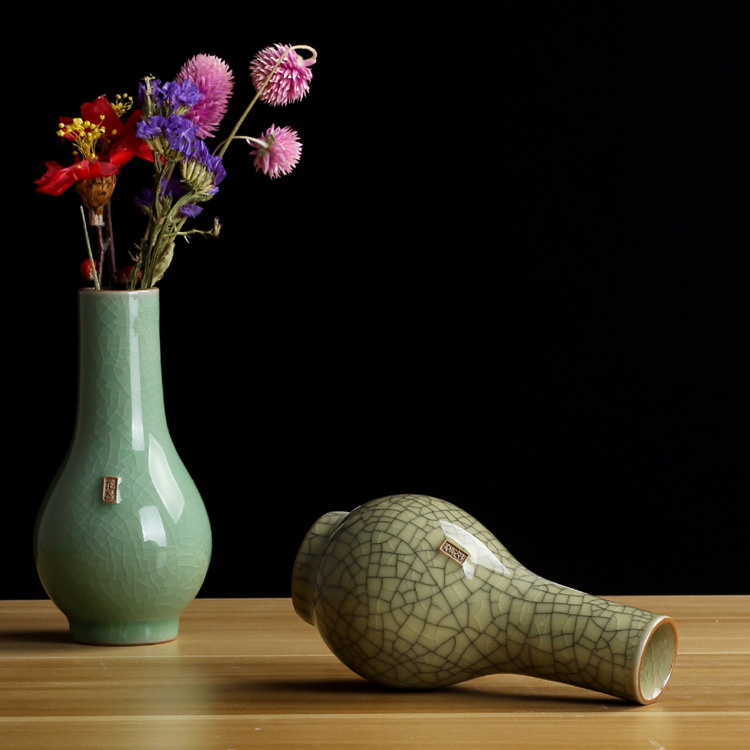 哥窯粉青冰裂個性時尚 小花器 家居裝飾品水培花瓶 花瓶擺件客廳插花龍泉青瓷