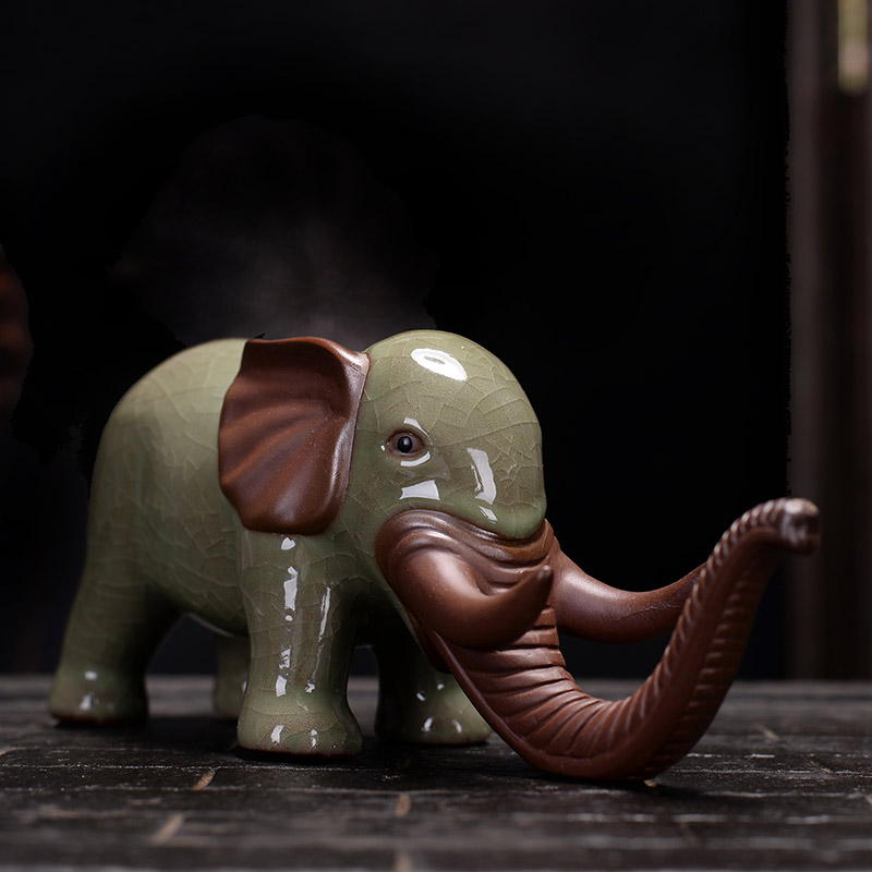 哥窯長嘴象+養壺筆紫砂哥窯大象茶寵 可養開片 創意養壺筆架精品吉祥動物茶玩小擺件