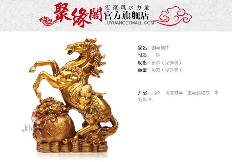 飛天馬聚緣閣招財馬擺件黃銅馬上發財風水生肖馬到成功銅器旺財促官運