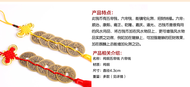 紅金邊結直徑4.3cm八帝錢開光大五帝錢純銅真品招財擺件辟邪鎮宅風水六帝錢五帝錢掛件