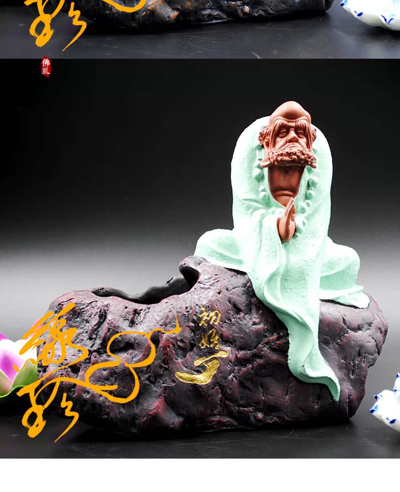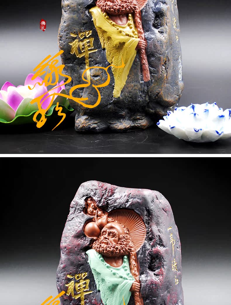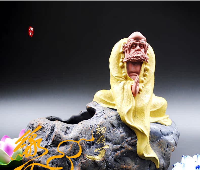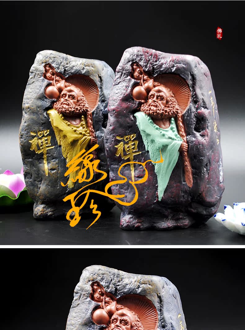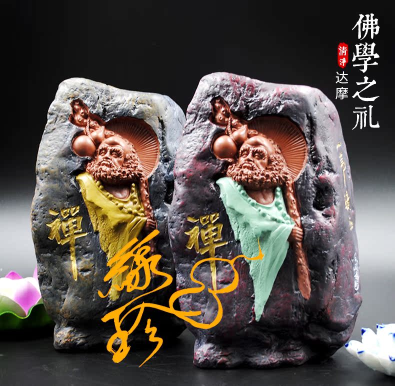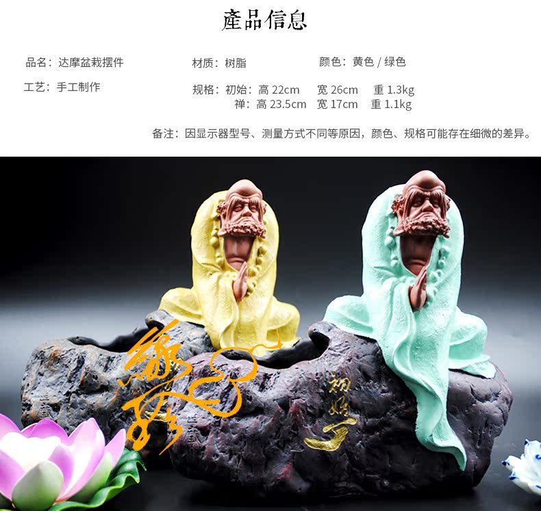 初始(黃)佛教人物達摩樹脂像擺件 初始參禪達摩 可種花盆栽擺件 茶寵擺件