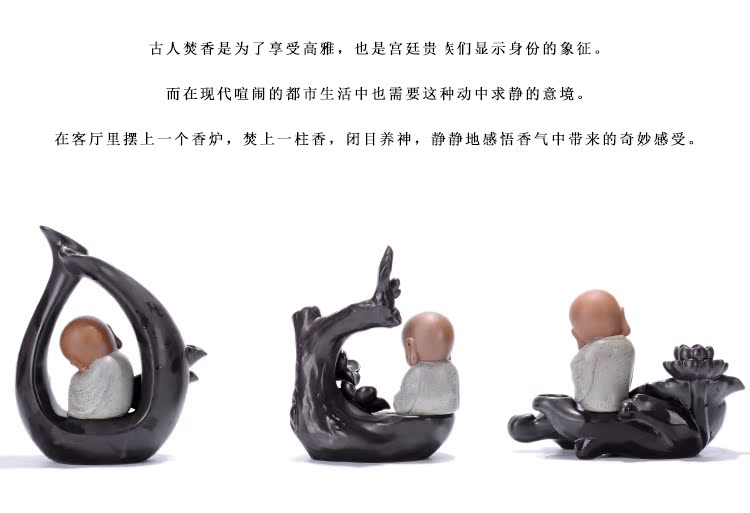 祈福流煙爐仿古小和尚荷塘月色家用倒流香爐居室茶道禪意裝飾擺件觀賞到流煙