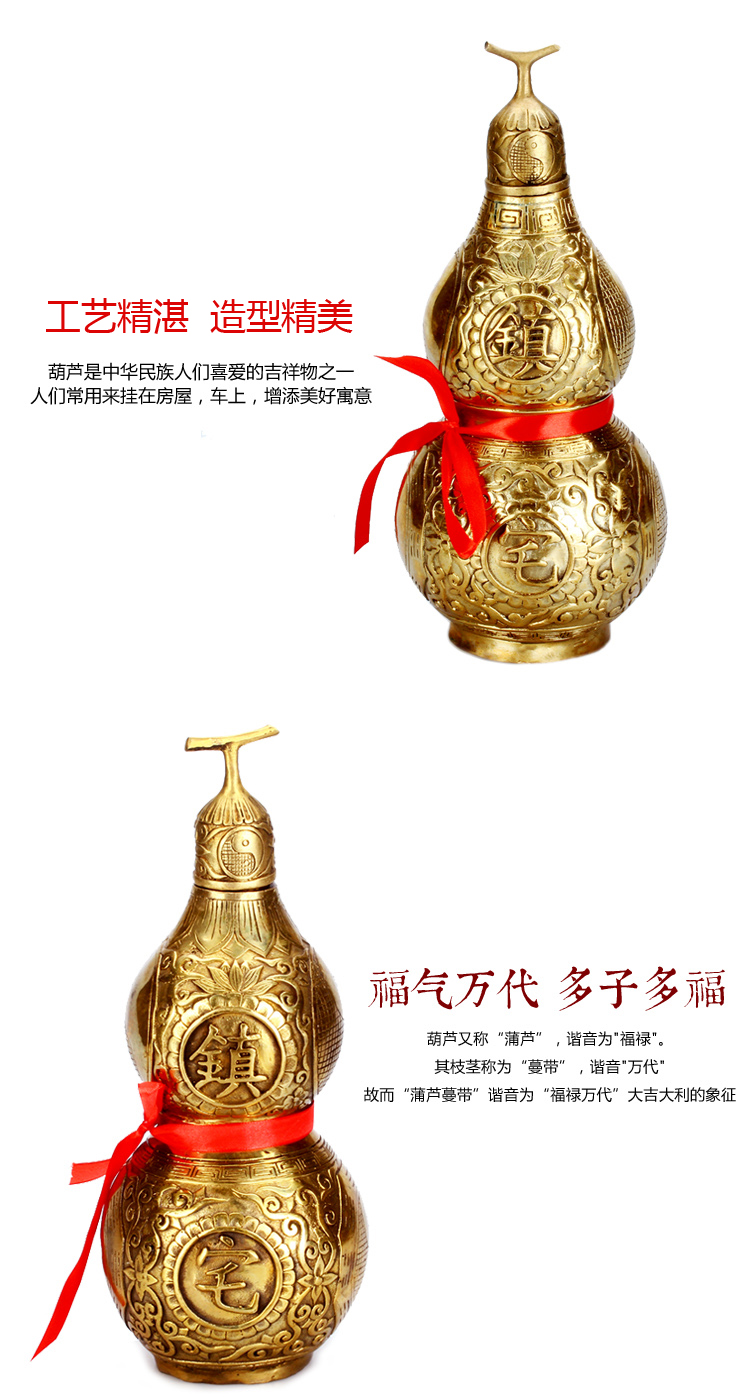 封口中號擺件:高18cm:直徑8.5cm銅葫蘆風水擺件銅開口八卦銅葫蘆招財客廳床頭寶葫蘆掛件