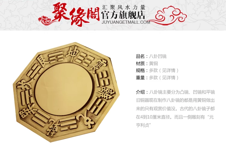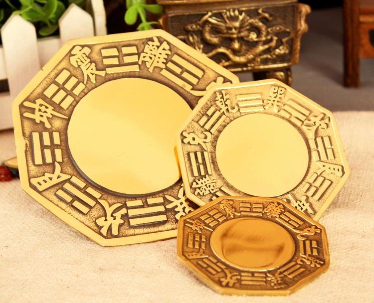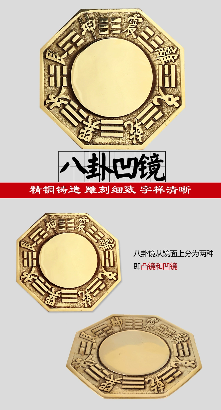 直徑6.5cm凹鏡聚緣閣風水黃銅凹鏡凸鏡平面鏡掛件擺件太極八卦鏡銅凹凸