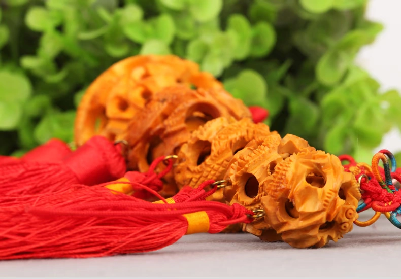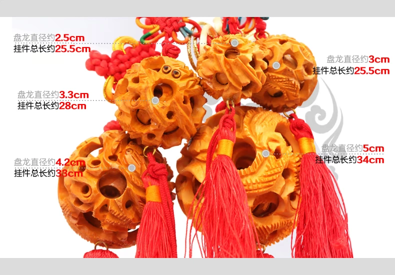 直徑2.5cm聚緣閣風水精雕民族結桃木雙龍盤龍路路通汽車掛件掛飾平安