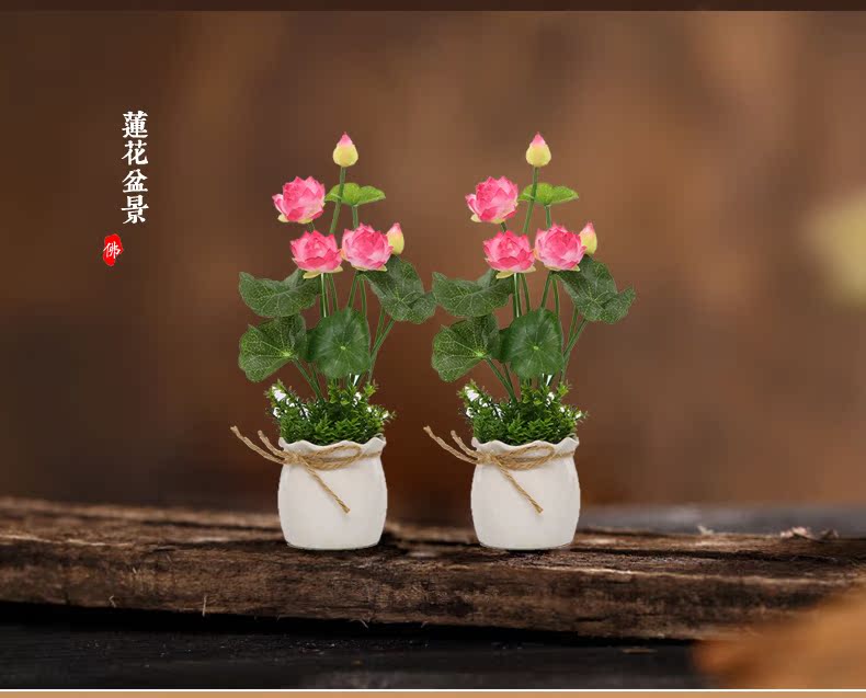 玫紅(單個)盆景蓮花擺件 佛前供花蓮花 供花仿真花擺件 佛堂供花蓮花佛前花