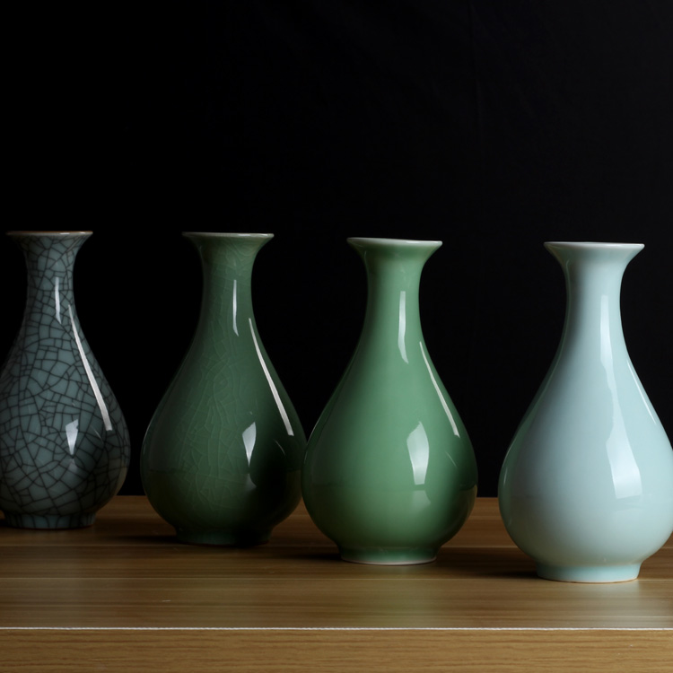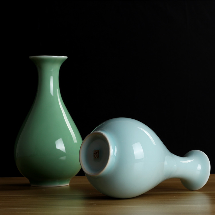 弟窯粉青龍泉青瓷 玉壺春 家居飾品花藝插花瓶 客廳臺面水培茶桌擺件花器