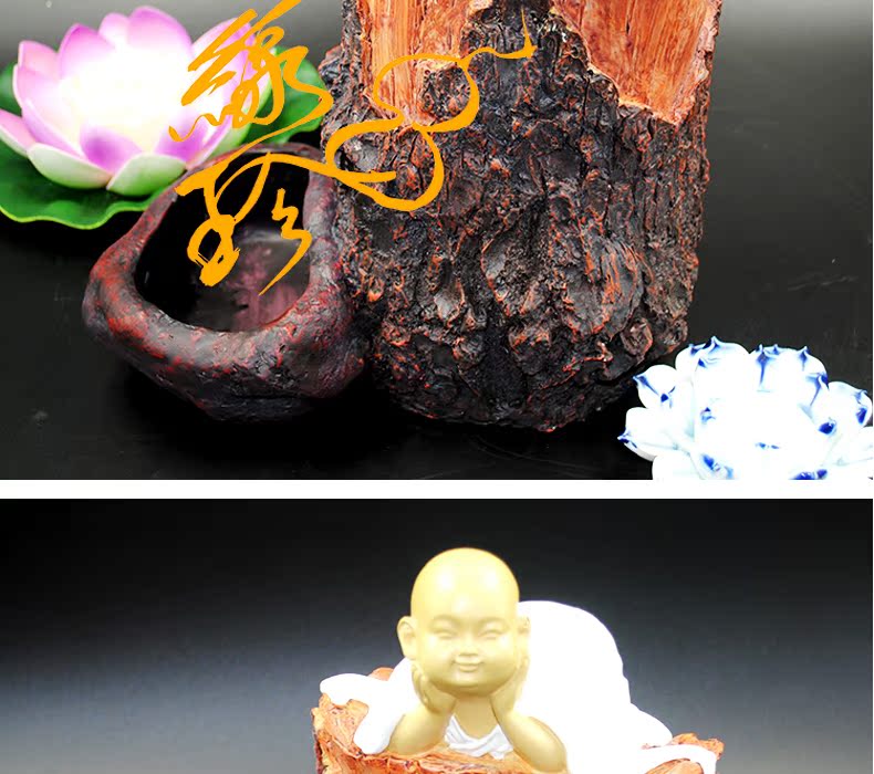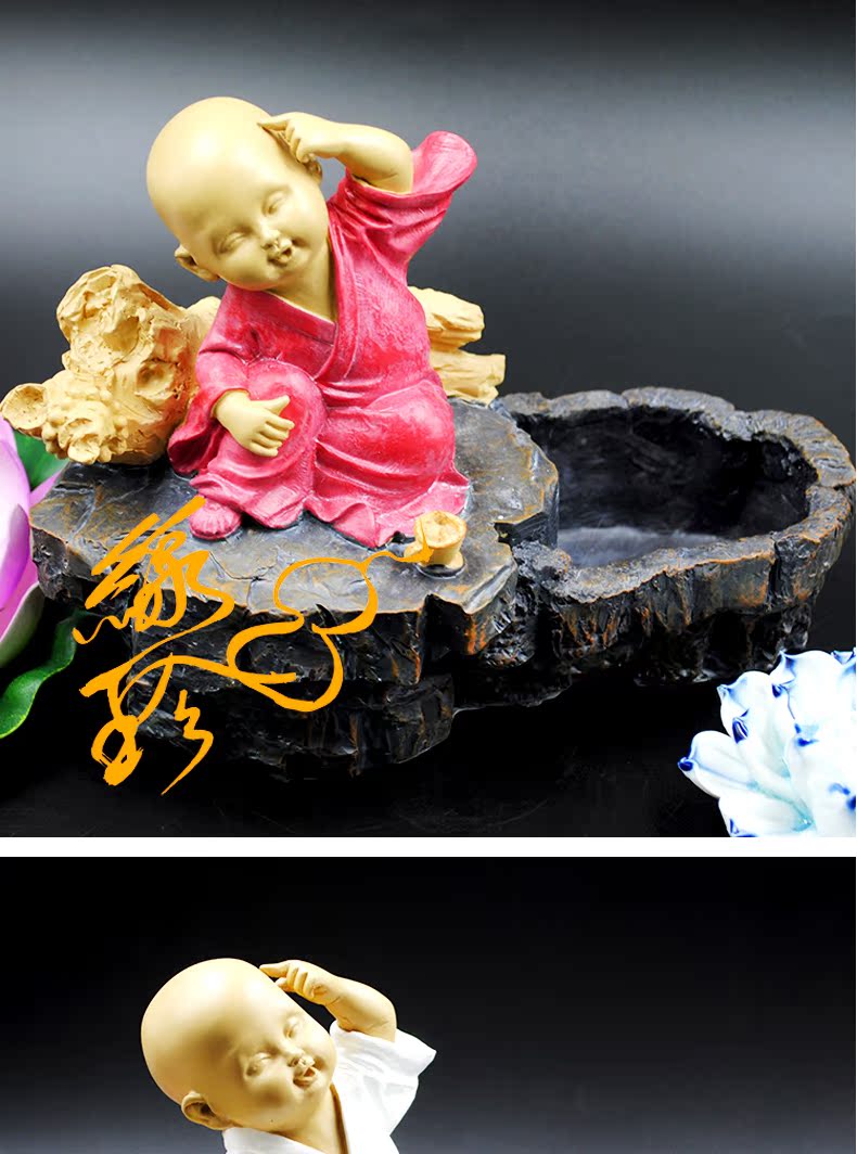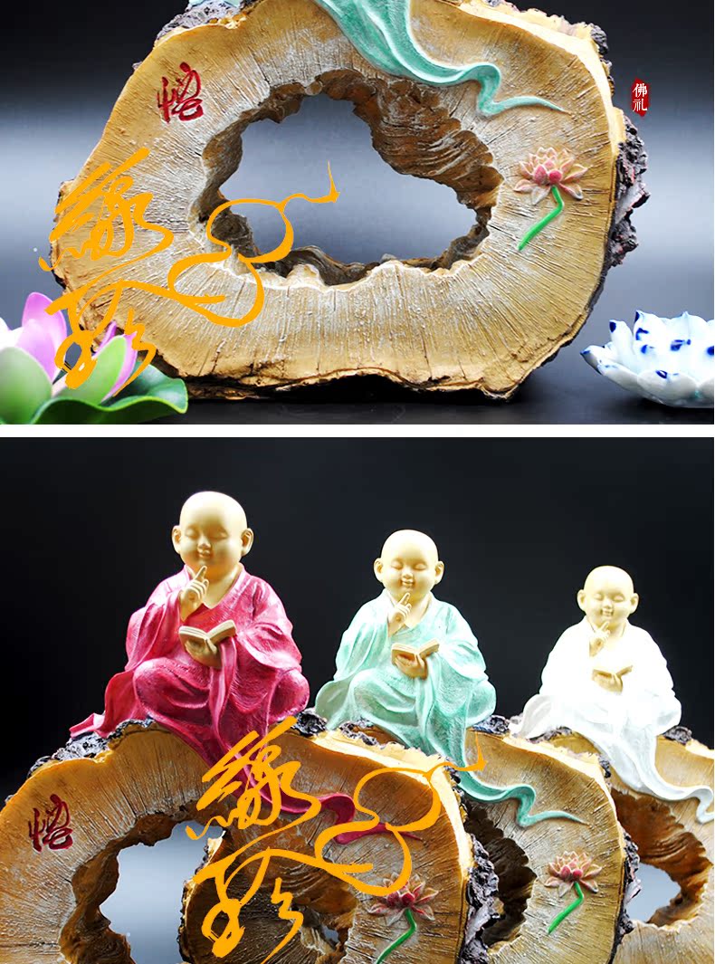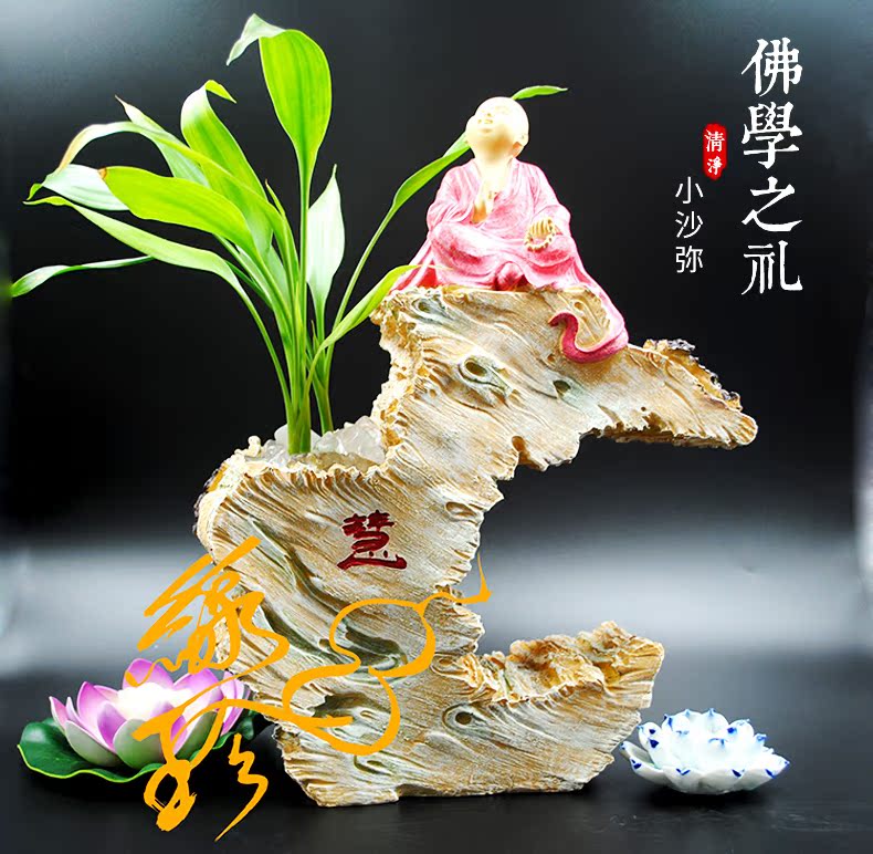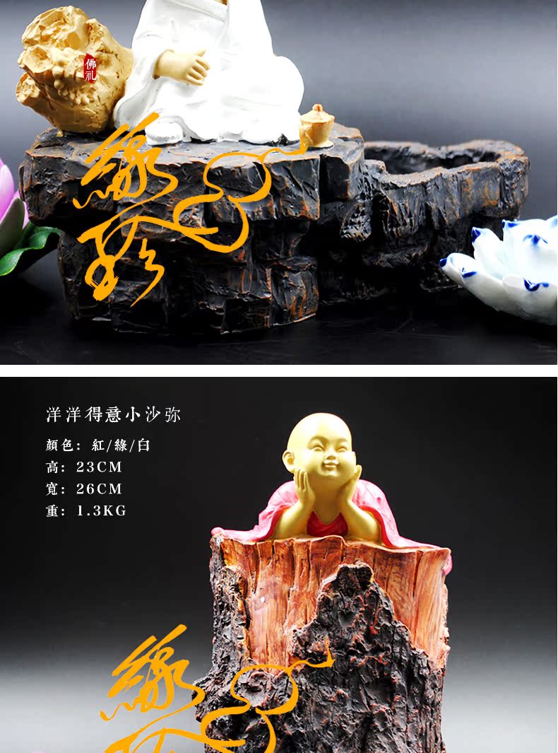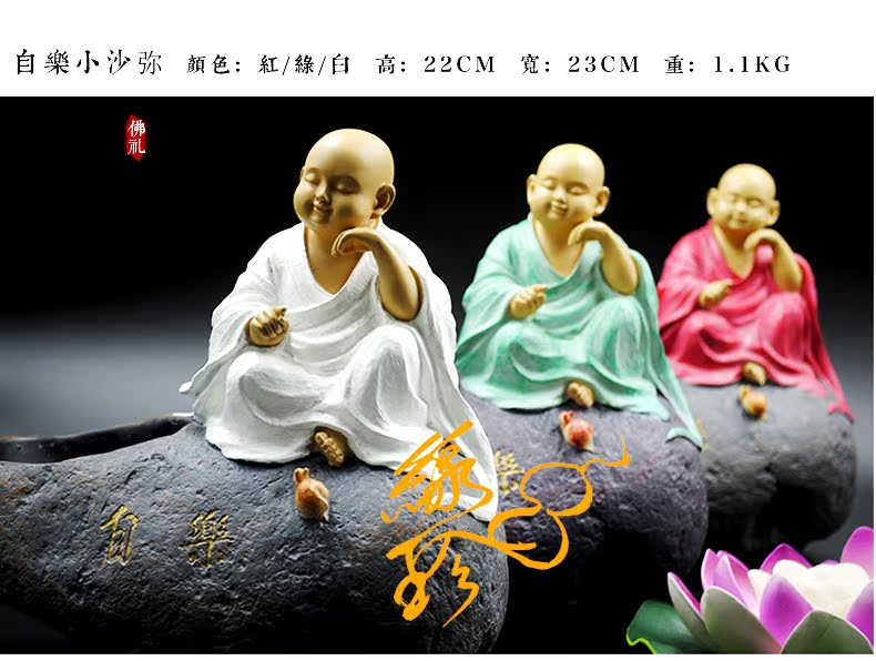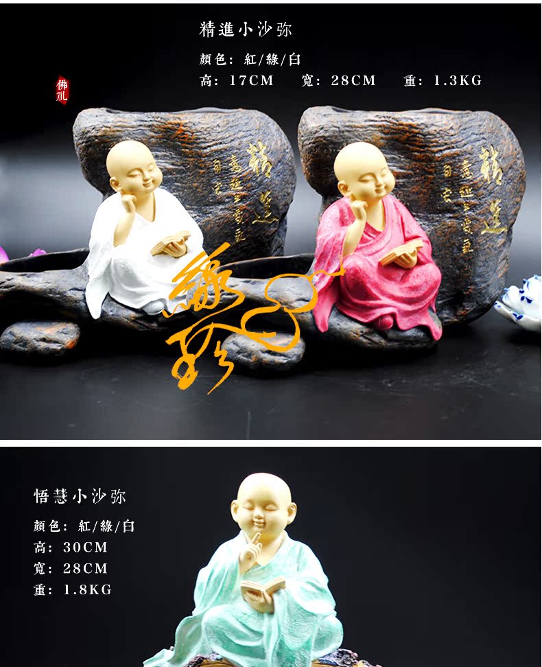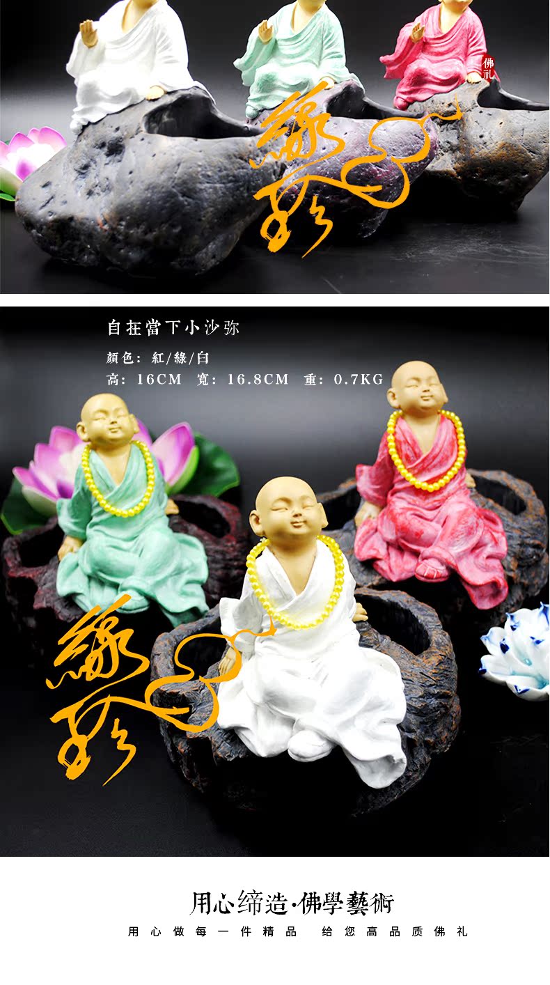 自在當下(白)小沙彌樹脂禪意擺件 悟慧精進自樂小沙彌小和尚 可種花盆栽擺件