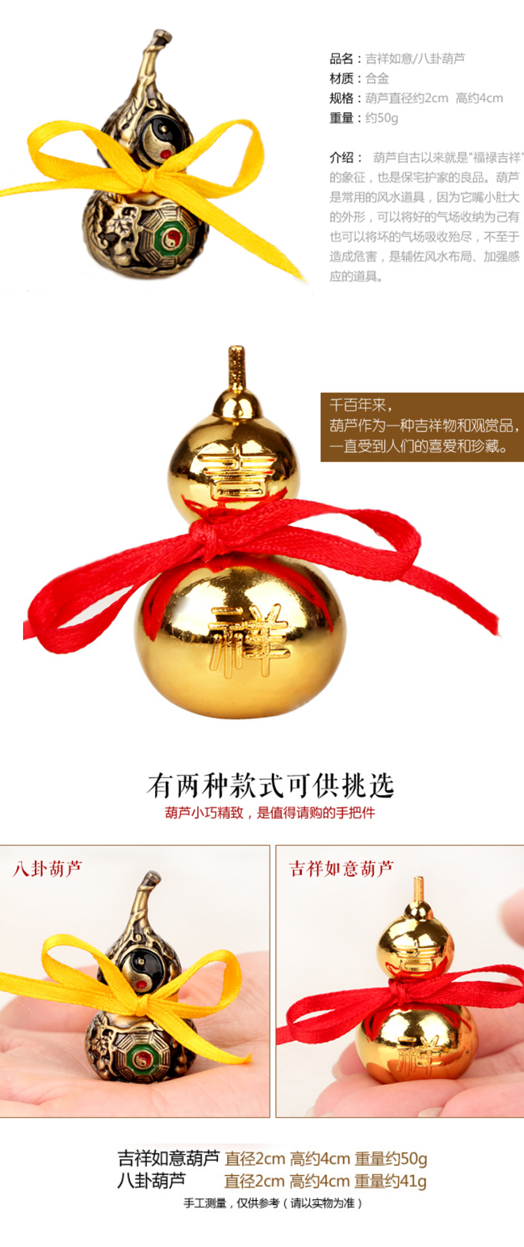吉祥如意款開光合金八卦葫蘆擺件小號迷你吉祥如意小葫蘆風水家居飾品