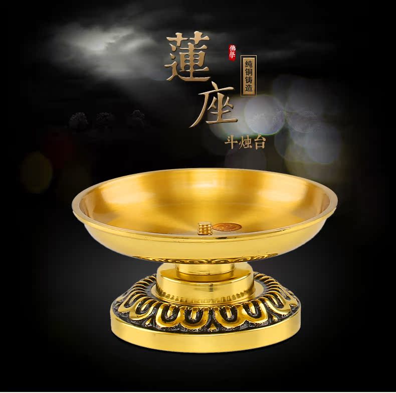 仿古(大)燭臺擺件佛具 萬玉堂蓮座斗燭臺純銅 酥油蠟燭斗燭臺銅 佛堂供奉