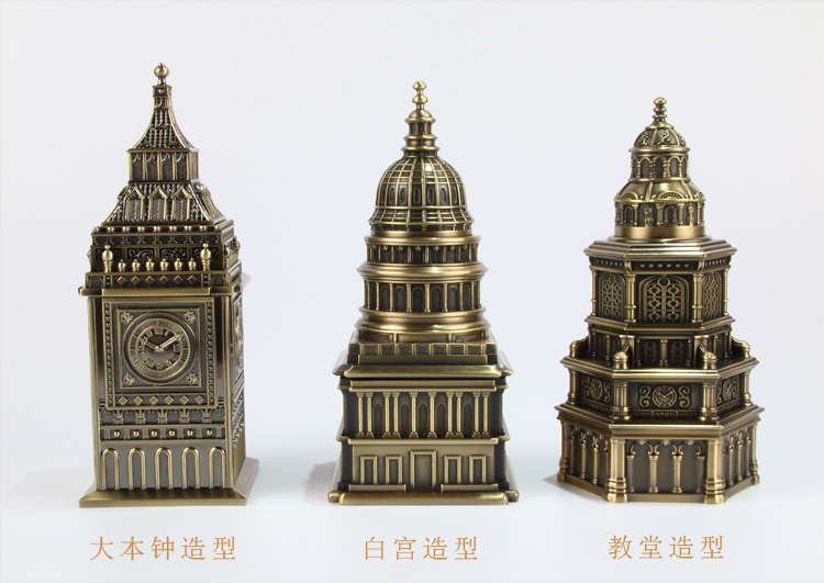 白宮金屬工藝歐式建筑牙簽筒高檔創意白宮牙簽筒自動手壓牙簽盒擺件