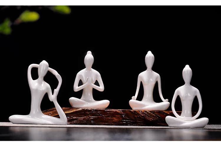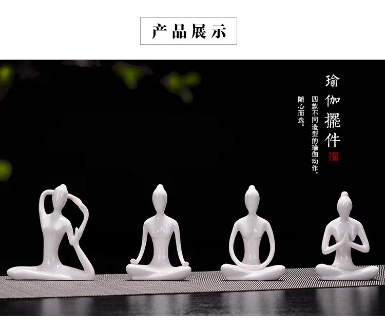 玉瓷白瑜伽人物四件套德化陶玉瓷白 瑜伽館人物擺件四件套 現代家居茶藝桌裝飾靜心茶寵