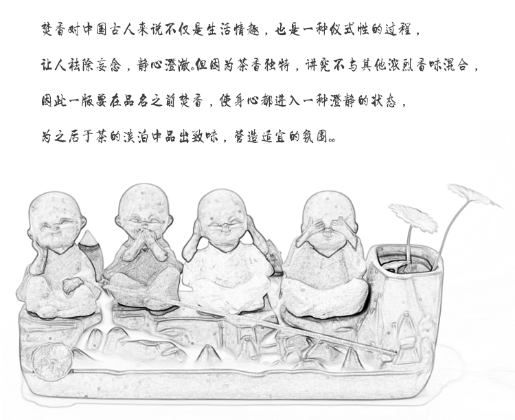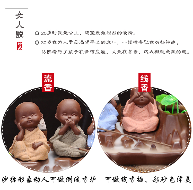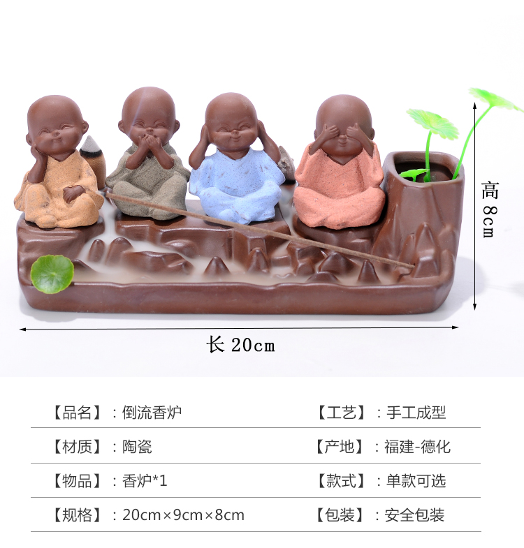 四不小和尚底座一體爐送60粒香加仿真裝飾綠葉。