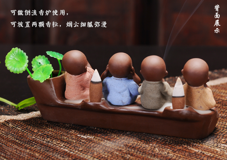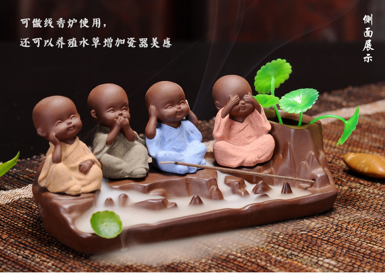 四不小沙彌倒流香爐創意紫砂四不小和尚熏香爐線香爐陶瓷家居茶道茶寵擺件
