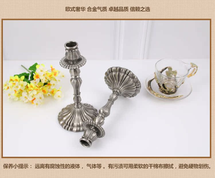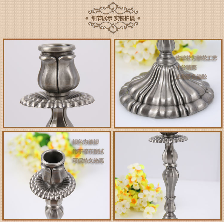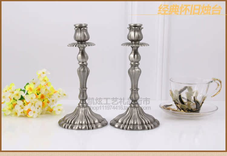 古錫色創意歐式經典懷舊蠟燭臺 金屬工藝單頭玫瑰花燭臺 家裝飾品擺件