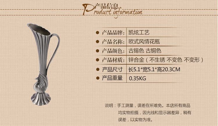 古錫色凱炫田園工藝歐式裝飾經典復古餐桌家居擺件高檔創意客廳插花花瓶