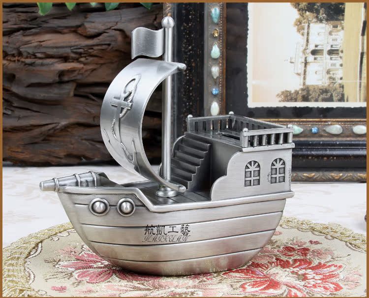 古錫色金屬歐式復古創意海盜船存錢罐工藝品擺件兒童小孩生日禮品零錢罐