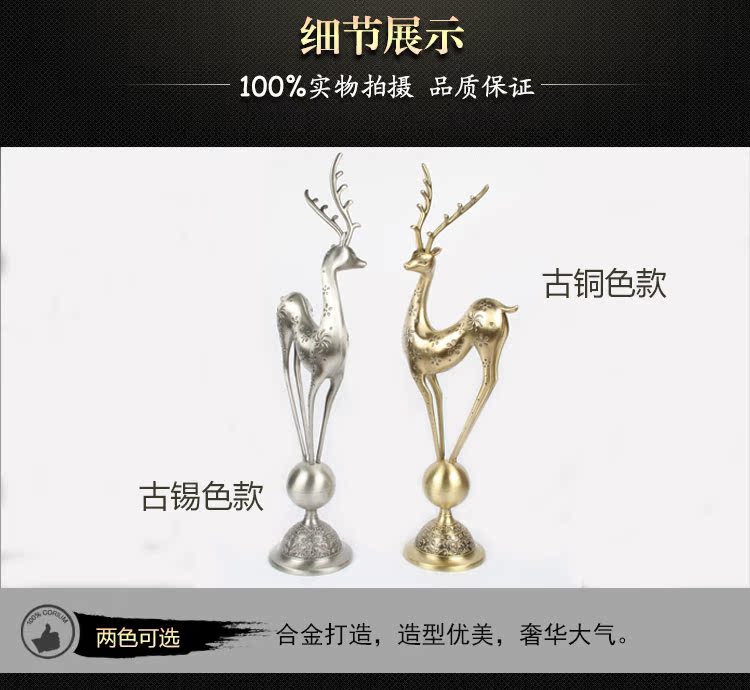 古錫色金屬工藝品球鹿裝飾擺件古典家居擺設品吉祥鹿 福壽鹿創意禮品