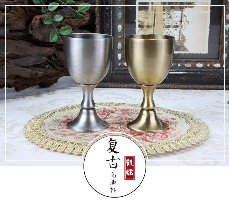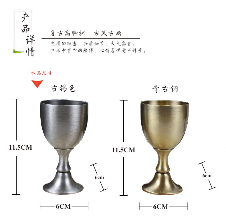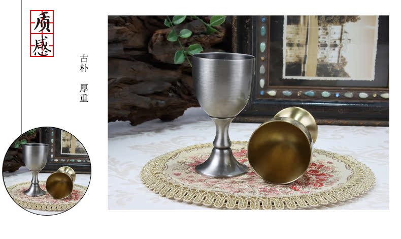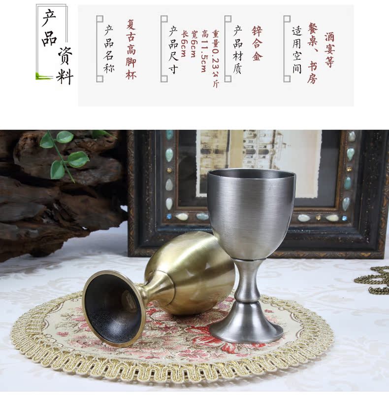 古錫色金屬工藝品酒柜擺件創意歐式復古光面高腳紅酒杯葡萄酒杯酒類禮品