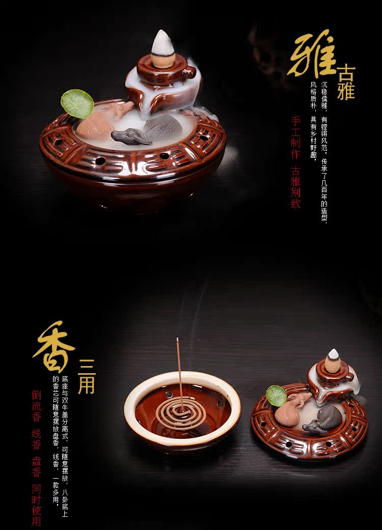 原創設計三用爐倒流香、線香、盤香均可使用,聞香賞煙景兩不誤。