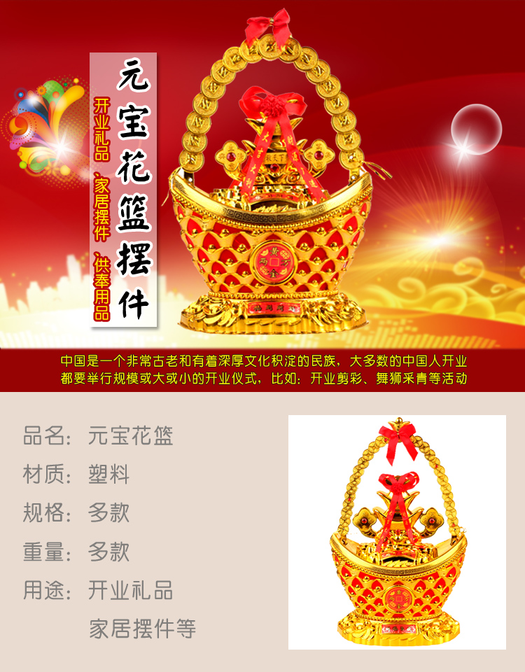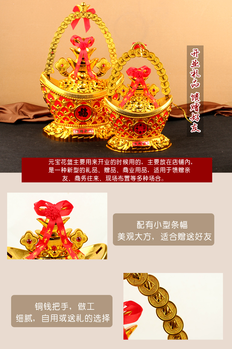 中號寶花籃寶花籃工藝品擺件新年春節裝飾品塑料招財寶開業禮品居家供奉