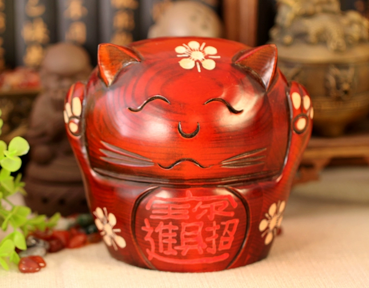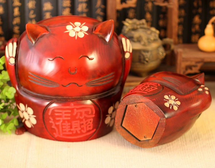 中號聚緣閣招財貓 招財貓擺件 創意禮品家居開業桃木大號儲蓄罐存錢罐
