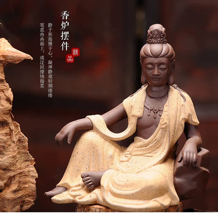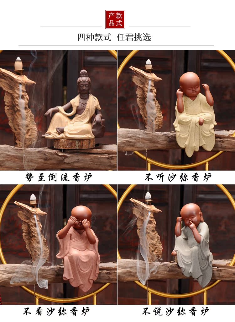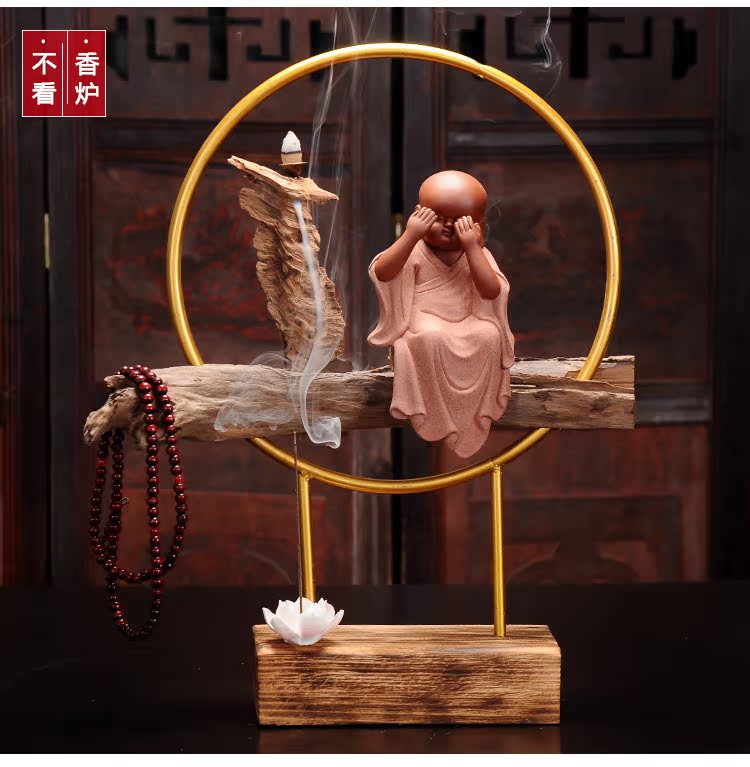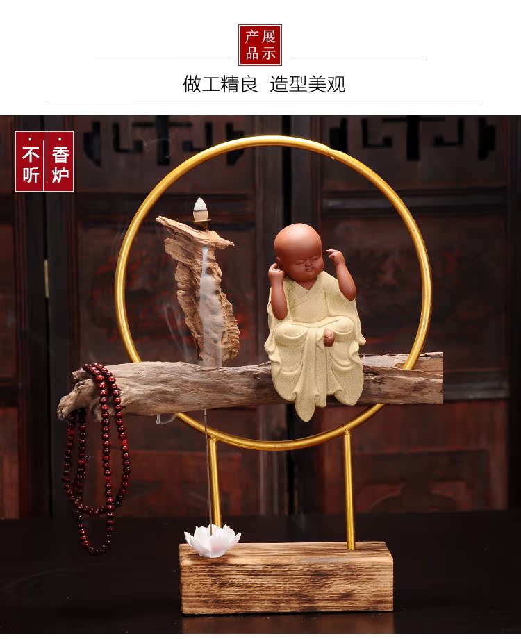 不聽香爐擺件創意新中式家居檀香風化木禪意根雕紫砂小和尚倒流薰香爐擺件茶道
