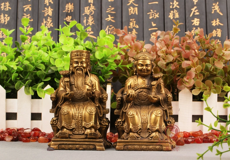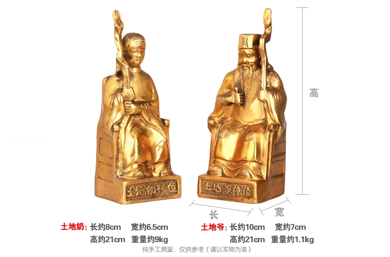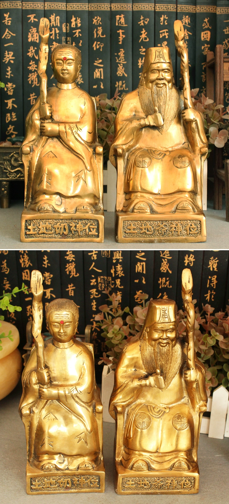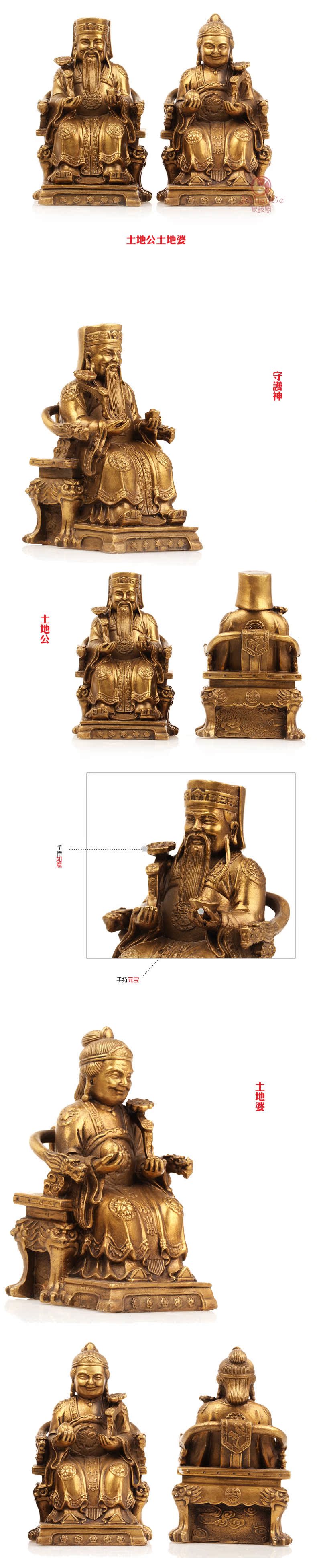 土地公小號開光風水黃銅土地公土地婆神像擺件家居銅佛像家居風水平安擺設