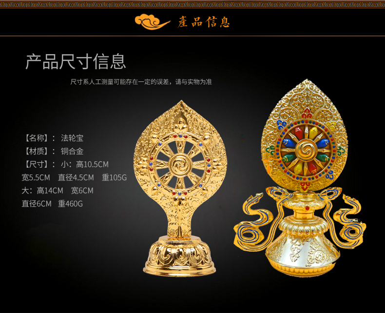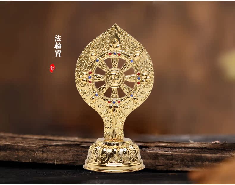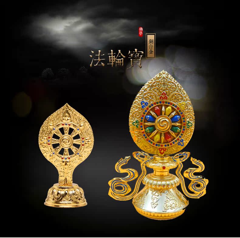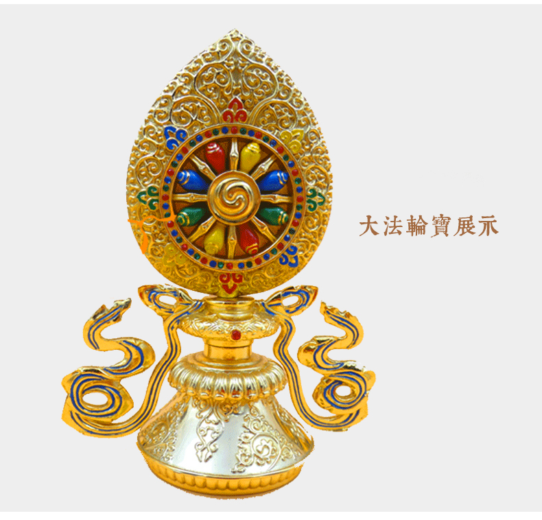 大藏傳密宗法輪寶擺件 佛具銅合金彩繪小法輪寶 鎮宅化煞擺件 密宗