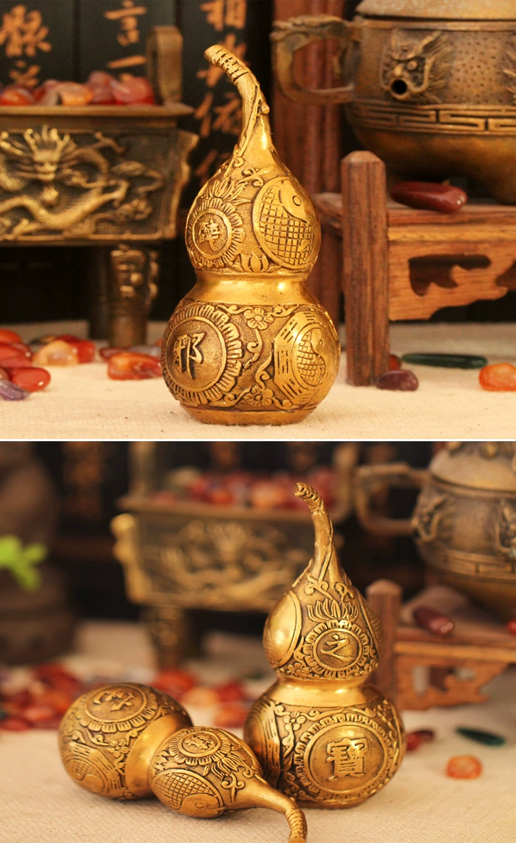 大號擺件:高12直徑5cm聚緣閣風水黃銅葫蘆擺件八卦葫蘆寶葫蘆掛件大小號家居工藝品
