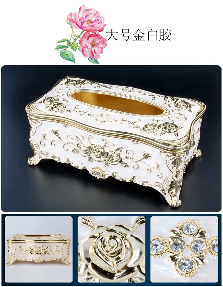 大號金白膠歐式可愛奢華紙巾盒手工創意家用衛生間廁所廁紙盒客廳抽紙盒